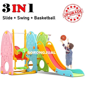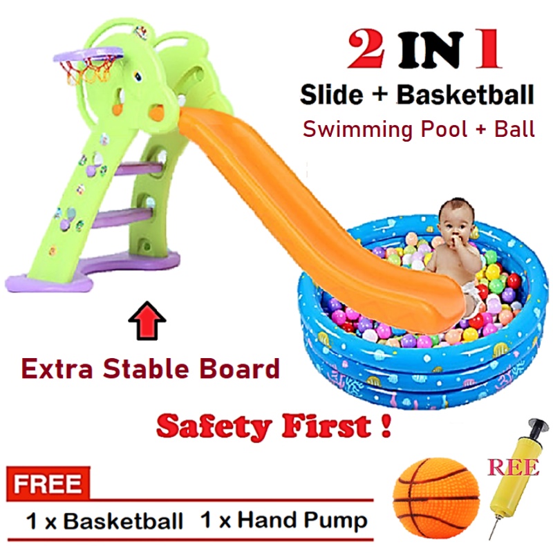 【Extra Big】Kindergarden Kid Colorful Playground Foldable Slide Basketball Indoor Outdoor Play Set Gelongsor