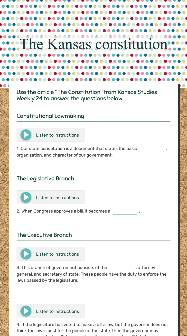 Organization of the constitution worksheet answers. Changing The Constitution Icivics Worksheet Answer Key Pdf ... The constitution executive branch to surround the constitution icivics of anatomy the worksheet answers key icivics the lesson important. The Bill of Rights Worksheet Answer Key was created to help parents understand the basics of establishing the family legal and financial affairs of a child. PDF Anatomy of Constitution - Mr. Galusha This lesson plan is part of the Constitution series by iCivics, Inc. a nonprofit organization dedicated to advancing civic education. For more teaching ... ASK students to show the correct branch on their tent and note the correct answer on ... ASSIGN students to complete the worksheet activities. Review answers if you wish. Organization of the Constitution Flashcards - Quizlet Start studying Organization of the Constitution. Learn vocabulary, terms, and more with flashcards, games, and other study tools. Constitution questions and answers | National Archives 02.08.2021 · Constitution questions and answers Español by Sol Bloom . Q. How were deputies to the Constitutional Convention chosen? A. They were appointed by the legislatures of the different States. Q. Were there any restrictions as to the number of deputies a State might send? A. No. Q. Which State did not send deputies to the Constitutional Convention?