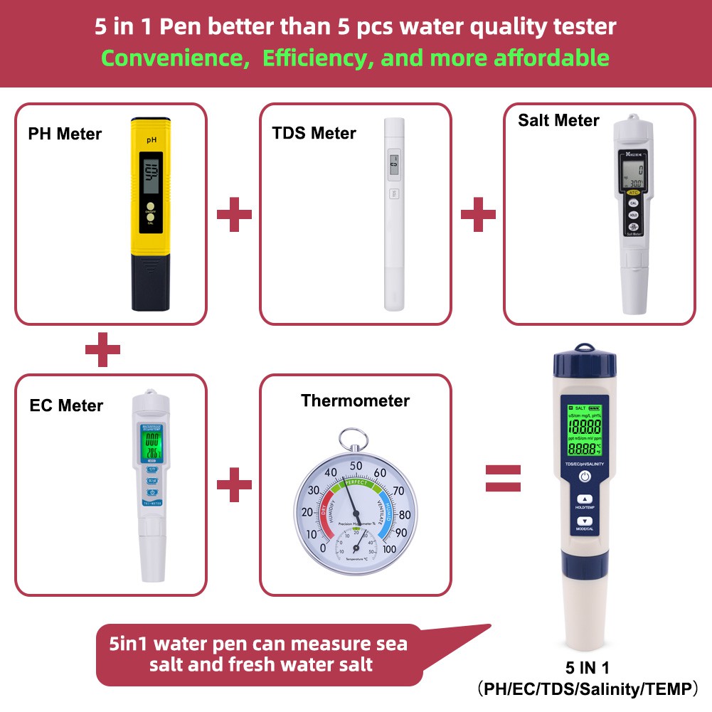 Digital Salinity Salt Water Quality Meter Tester Checker Water Pool and Koi Fish Pond, Hydroponics, Gardening, Aquariums with Temperature 70ppt Water ...