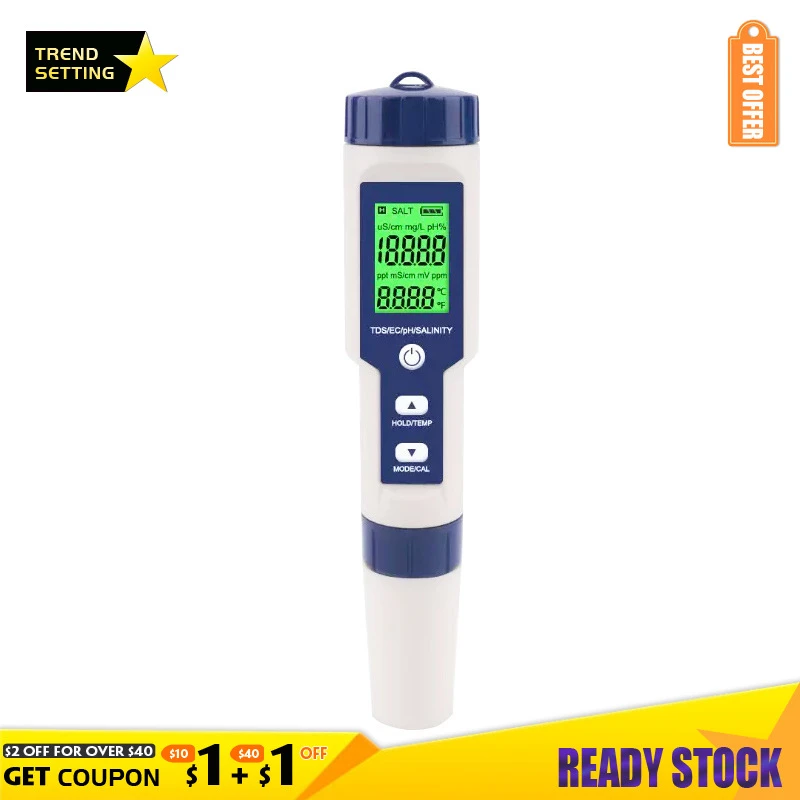 Digital Salinity Salt Water Quality Meter Tester Checker Water Pool and Koi Fish Pond, Hydroponics, Gardening, Aquariums with Temperature 70ppt Water ...