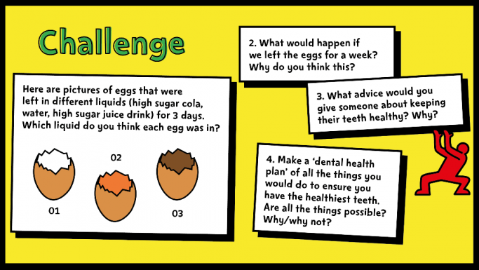 Tooth Decay Experiment with Egg shells Feb 12, 2021 · Tooth decay experiment with egg shells. We can’t experiment on our own teeth so are using eggs to represent them, as the shell of an egg is made of a similar substance to tooth enamel! What you’ll need for a tooth decay experiment: Eggs. Jars. Water. Tea/Coffee. Fizzy flavoured drink. Vinegar. Toothpaste