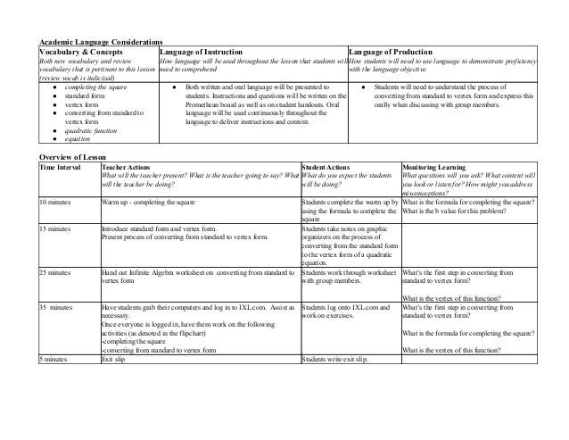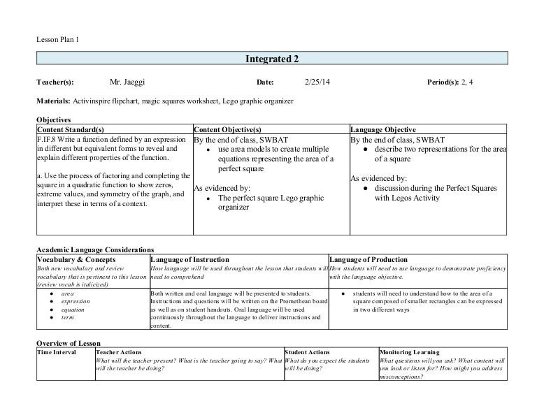 PDF High School Mathematics Lesson Plan: Workplace ... The following lesson plan and lesson narrative show mathematics teachers how they can incorporate the use of literacy strategies to support high school students to learn mathematics content and concepts. The lesson is designed for one block period (80-90 minutes) or two traditional classes (50 minutes). Instructional Outcomes