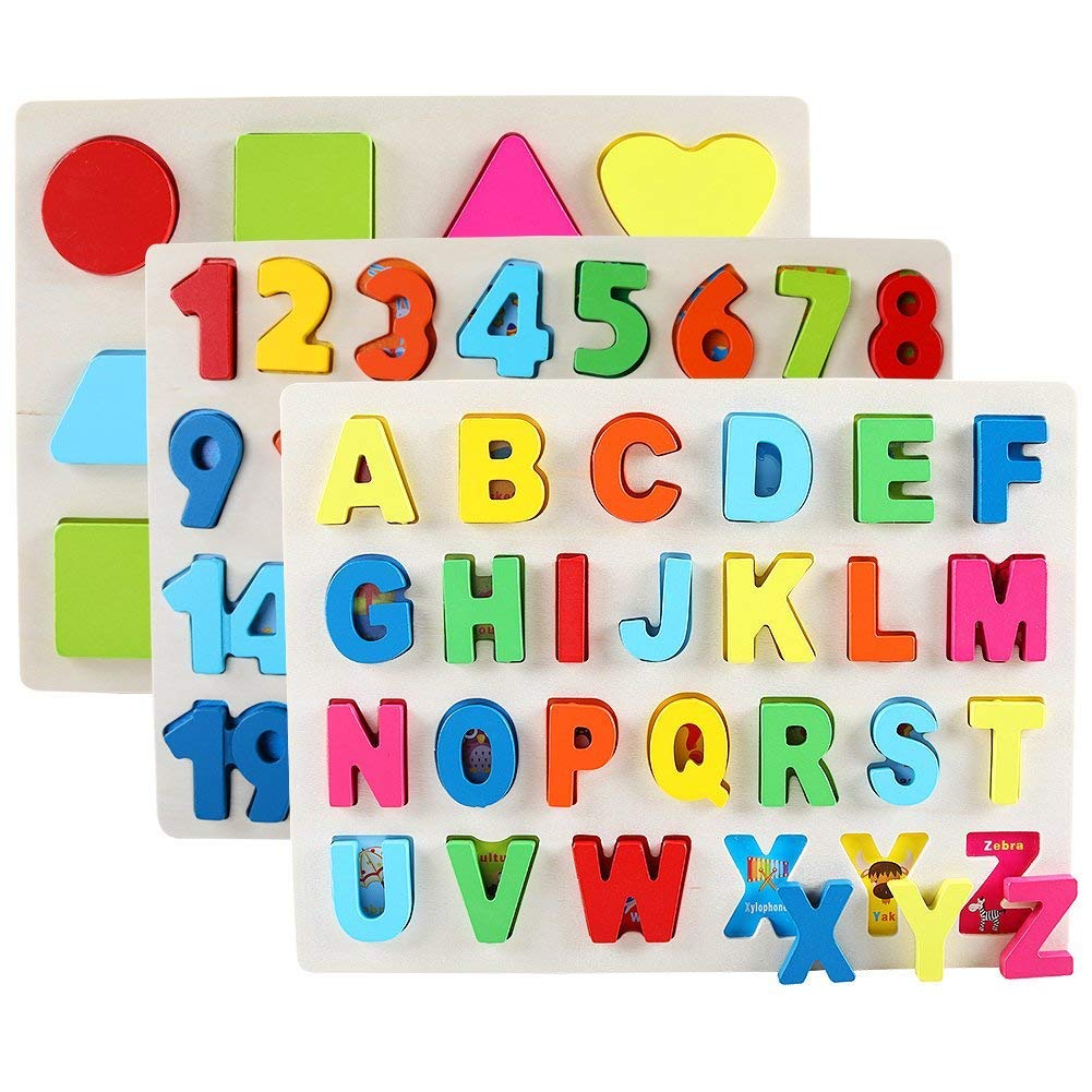 Wooden Puzzles for Toddlers, Wooden Alphabet Number Shape ABC Name Puzzles Toddler Learning Puzzle Toys for Kids 1-6 Years Old, 3 in 1,Montessor ...