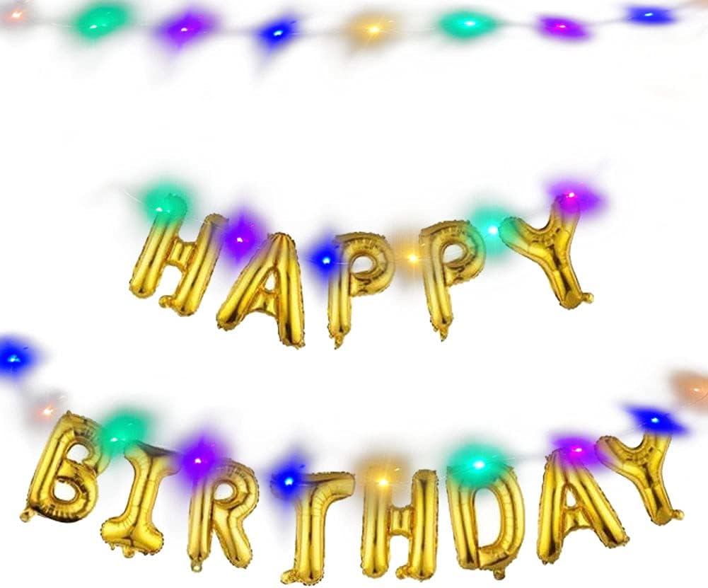 MEMOVAN Gold Happy Birthday Balloons Banner with LED Lights, LED Sign Light Gold Birthday Banner, Inflatable Gold Mylar Foil Birthday Balloon Letters ...