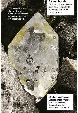 How Are Diamonds Made? - Arizona State University What Are Diamonds? Surprisingly, these gems are made of only one element, carbon. Carbon is the same element that makes coal or graphite used for pencils. Why are diamonds transparent and hard while coal and graphite are opaque and soft? It all comes down to the placement of their atoms. In diamonds, each carbon atom is bonded to 4 other carbon ...