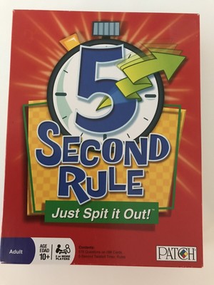 FREE PRINTABLE 5 SECOND RULE JUNIOR GAME - PlayMonster UK May 14, 20 It seems like it would be easy to name three flavours of ice cream but can you do it under pressure? You have 5 second to answer, so just say whatever comes to mind and risk silly answers slipping out….because that would be funny, and we all like to laugh! 5 Second Rule The Game of Quick Thinking and Fast Talking! 1. Place the cards into the card box. All the cards should have the same colour facing the front/draw end. Note that the card box does not hold all the cards and there are more that can be used when required. 2. Place the card box and the timer in the middle of the table where everyone can reach them. 3. 5 Second Board Game Rules - How Do You Play It 5 Second board game rules state that if you are the owner of the game then you are in the Hot Seat first. Play continues to the right. The question on the cards all begins with "Name 3…" and then give you a certain category. The card might ask, "Name 3 famous people named Mickey." The timer starts after the card is read.