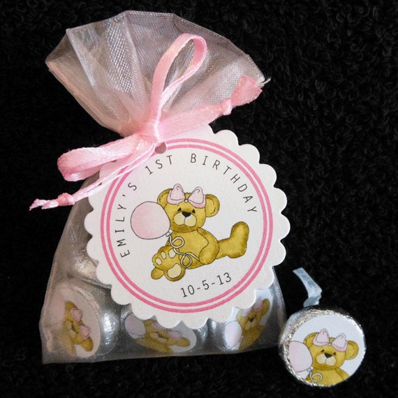 Adult Birthday Party Favors | Personalized Hershey's Kisses Select your Hershey's Kiss foil color to fit your party theme, and include a personalized message, date, or short text on the Kisses' candy sticker to make these mini milk chocolate morsels into mouthwatering birthday memorabilia.