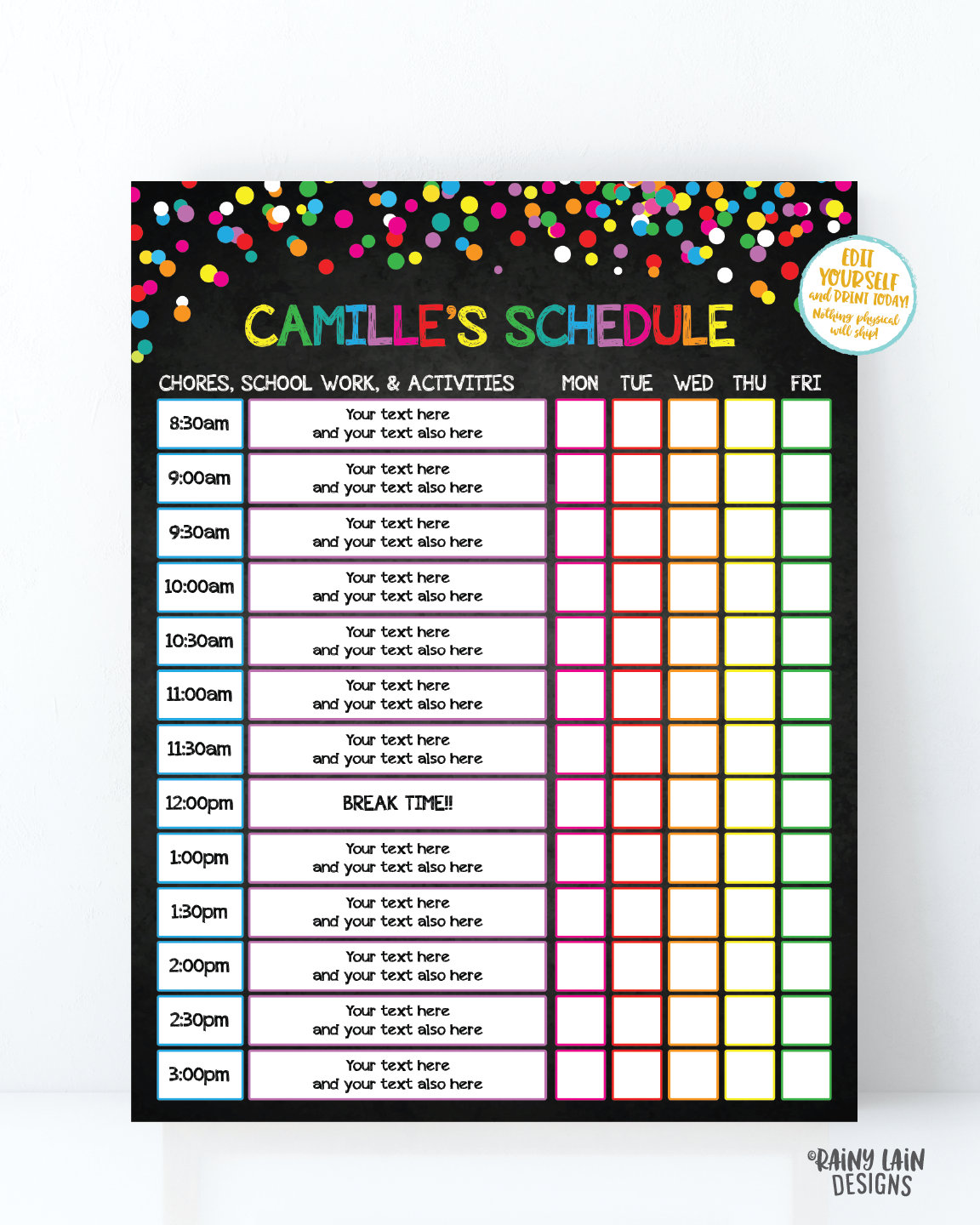 Toddler/Preschool Visual Schedule DIY (with Free Chart Printables!) Instructions. First, you'll want to print out your labels and icons. Cut out your labels and icons with scissors or an X-Acto knife, leaving a small border of white around the boxes. Peel off one self-adhesive sheet and arrange your squares in a row with space between them. Put as many as you can fit on one page. Daily Visual Schedule for Kids Free Printable - Pinterest Daily Visual Schedule for keeping kids on task, This is an Amazing Free Visual Schedule and Kids Daily Schedule that is perfect for Autism, preschoolers, and ... Daily Visual Schedule for Kids Free Printable - Natural Beach Living Using picture cues for children is a great way to establish a routine. Start with a morning routine (bathroom, breakfast) Get dressed Playtime, errands, preschool, activities Lunch Playtime, activities, outdoor time Snack Nap … Once you feel you have a complete schedule for your child, you should have it posted for a whole day.