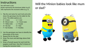 Making Babies with Punnett Squares - ctlessons.org Making Babies with Punnett Squares. Grade 7, 30-45min. In the BabyMaker activity, students begin by identifying their own genetic traits, answering a series of questions about their facial features. As they input their phenotype, an animated cartoon representation of themselves as a baby is created. PUNNETT SQUARES FOR KIDS - YouTube About Press Copyright Contact us Creators Advertise Developers Terms Privacy Policy & Safety How YouTube works Test new features Press Copyright Contact us Creators ... The Punnett Square {FREE Printable Included} The Punnett Square is a foundational genetic principle. It helps scientist predict which traits an offspring can have. In today's post, I wanted to provide you with the tools to introduce this concept to your students. DNA, Genes, and the Punnett Square Coded within the DNA of an organism are thousands of genes. 20 Awesome Punnett Square Activities for Middle School The Punnett Square is a diagram that helps to determine possible genetic outcomes between two individuals. It may not seem like it, but there are tons of ways to make the lesson relevant to teens and engage them in learning about the basics of cross-breeding.