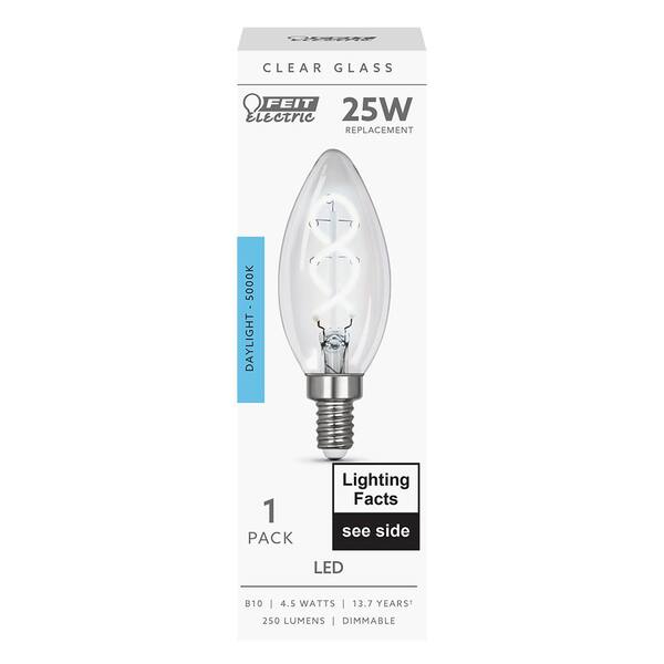 LED Chandelier Bulbs - 25 Watt Equal | 1000Bulbs.com Bulb Shape: Chandelier Bulb - Bent Tip; Base Type: Candelabra (E12) Height: 4.17 in. Diameter: 1.37 in. $1.83 ea. More Info. PLT-11886. More Info. 25-watt equivalent LED chandelier bulbs use less energy, but produce the same illumination as 25-watt incandescent bulbs. As their name suggests, they work well for chandeliers and are also great for ...