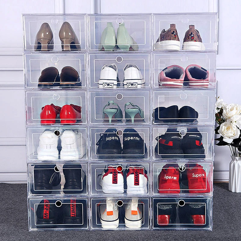 1PC Shoe Boxes Flip-Open Cover Durable Plastic Shoe Hanger Storage Transparent Box Divider Drawer Shoes Cabinet Organizer