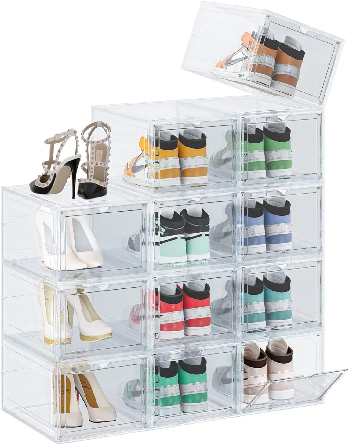Shoe Storage Boxes - Walmart.com Pinkpum 12 Pack Shoe Storage Boxes, Plastic Clear Stackable Shoe Containers (12 Tiers) Add. $54.99. current price $54.99. Pinkpum 12 Pack Shoe Storage Boxes, Plastic Clear Stackable Shoe Containers (12 Tiers) Save with. 2-day shipping. Oukaning 8 Pcs Magnetic Drop Front Shoe Storage Box Stackable Sneaker Large Container Plastic. Add.