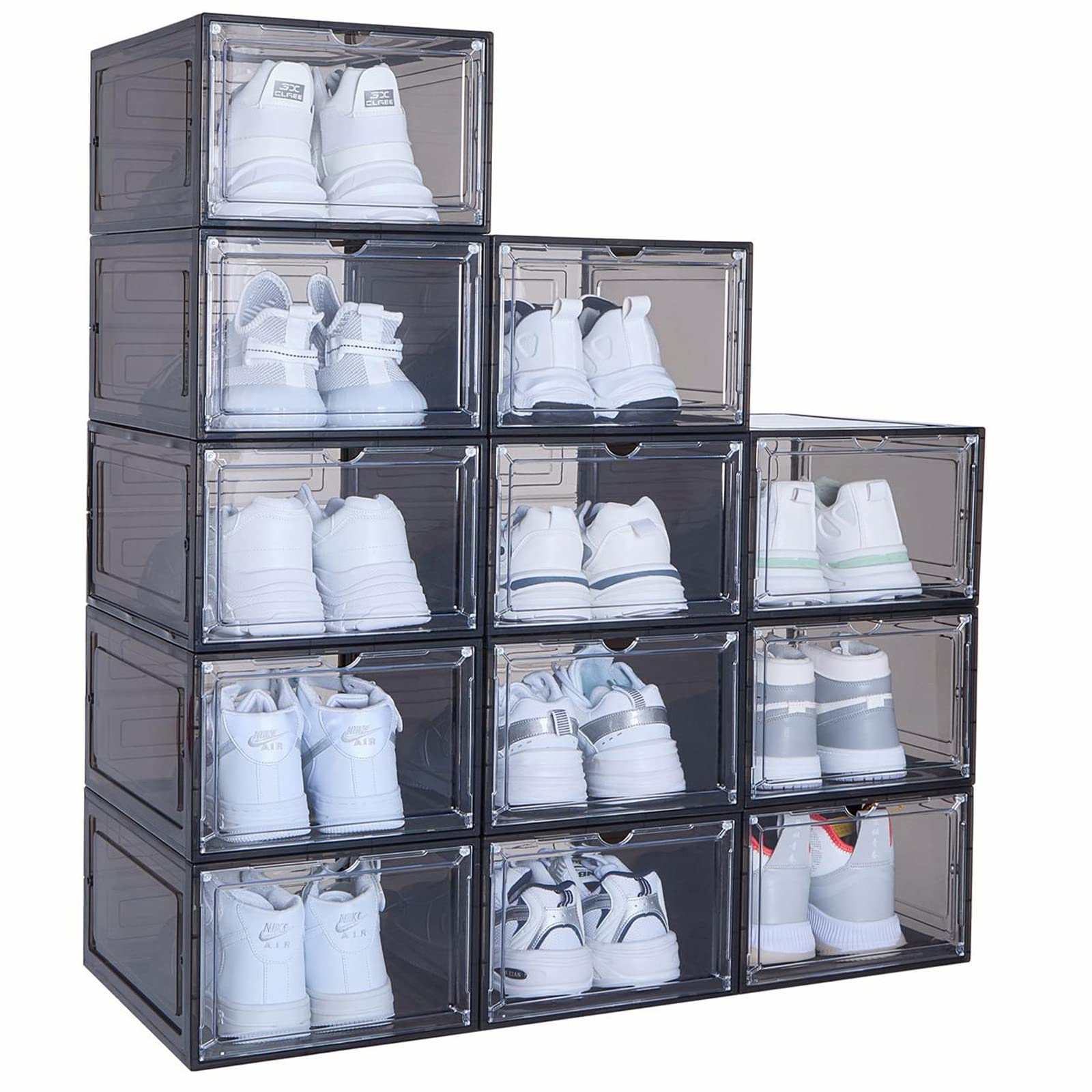 Amazon.com: containers for shoes Hrrsaki 15 Pack Shoe Organizers Storage Boxes for Closet, Clear Plastic Stackable Shoe Containers with Front Opening Lids, Ventilation and Dust-proof, Under Bed Shoe Storage for Entryway, Drop Front, Cubby, Fit for Women/Men Size 9(13" x 9" x 5.5"), White. 3.2 out of 5 stars 8