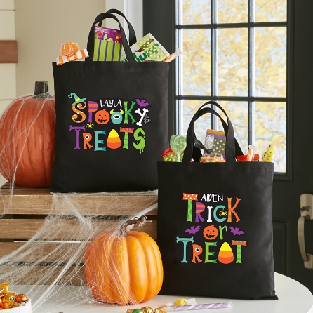 Halloween Treat Bags | Halloween Trick or Treat Buckets ... These treat bags hold plenty of candy and will make your child smile each time they hold them out and say "trick or treat." Our Halloween treat backs and buckets will make going around the neighborhood even more fun. They'll impress their neighbors when they hold out JoJo Siwa sequin bow tote bag or Super Monsters treat bucket. From treat ...
