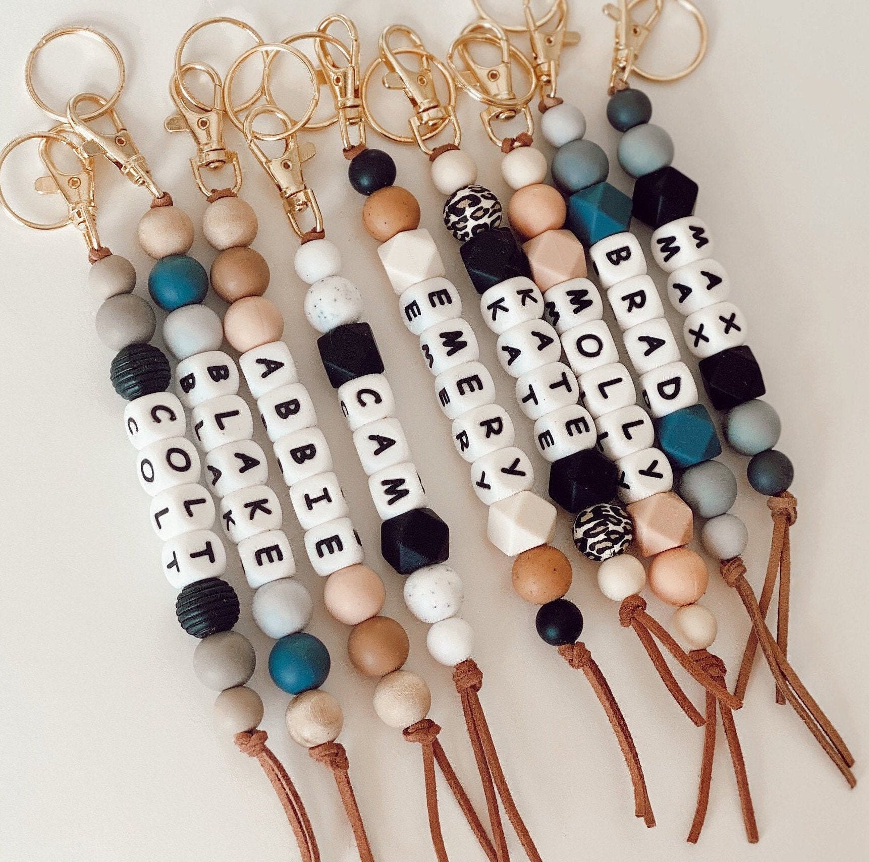Easy DIY Beaded Keychain | The Pretty Life Girls How to make your own easy DIY beaded keychain Step 1: Paint your beads. Be sure to have fun with the colors! We recommend choosing something bright that will make your keys stand out so you can find them easier when they are hiding between the couch cushions. Step 2: Apply two coats of paint, letting the beads dry completely between coats.