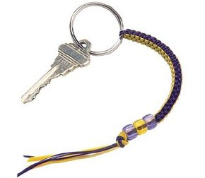 How to Make Beaded Key Chains for Kids | HowStuffWorks Loop the lanyard through the key ring to begin. 3. Fold the left yellow lace to the right over the top purple lace. Fold the yellow lace over to start the pattern. 4. Fold the back purple lace up over the yellow laces. Up and over goes the purple. 5. Fold the back yellow lace over the right purple lace and under the left purple lace.