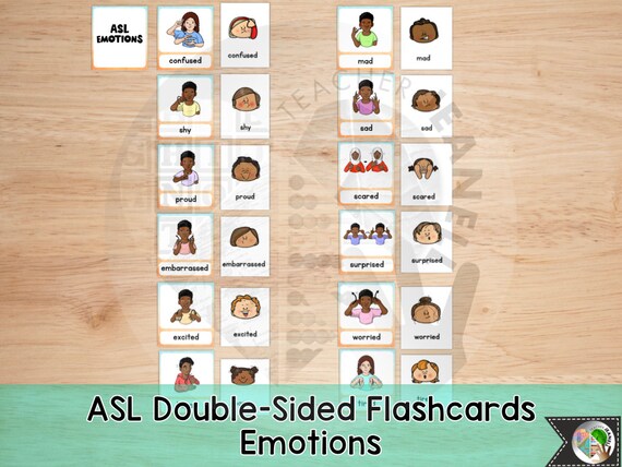 ASL Emotions Flash Cards, American Sign Language, ASL Flashcards, Homeschool Resources, Sign Language Flashcards