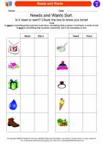 Needs and Wants Worksheet | Teach Starter This worksheet, geared for use in kindergarten or first grade, helps kids identify needs (things you need) versus wants (things you want). Introduce your kids to economic concepts through this fun activity. Students will have the fun opportunity to pick out things that are needs versus wants and color them with different colors.
