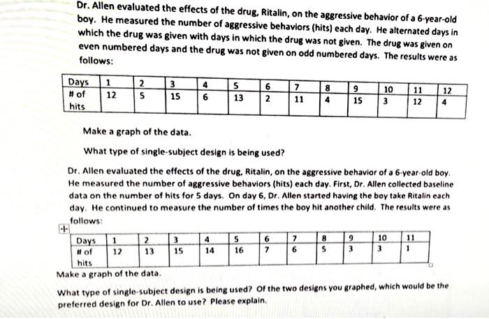 Solved Dr.Allen evaluated the effects of the drug, Ritalin ...