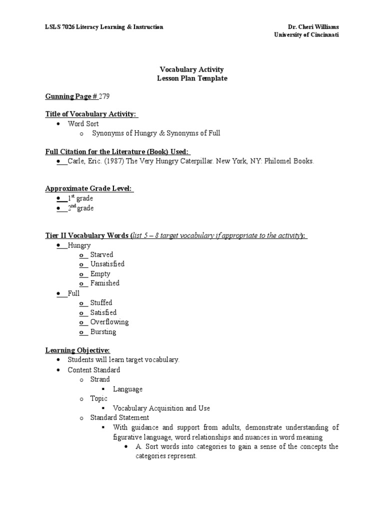 The Very Hungry Caterpillar Lesson Plan - MissRae - Google Sites The Very Hungry Caterpillar Lesson Plan Name: Michelle Rae Lesson Plan Title: The Very Hungry Caterpillar Grade Level: K 1. Standards/Objectives · Curricular Standards: RL.K.1 With...