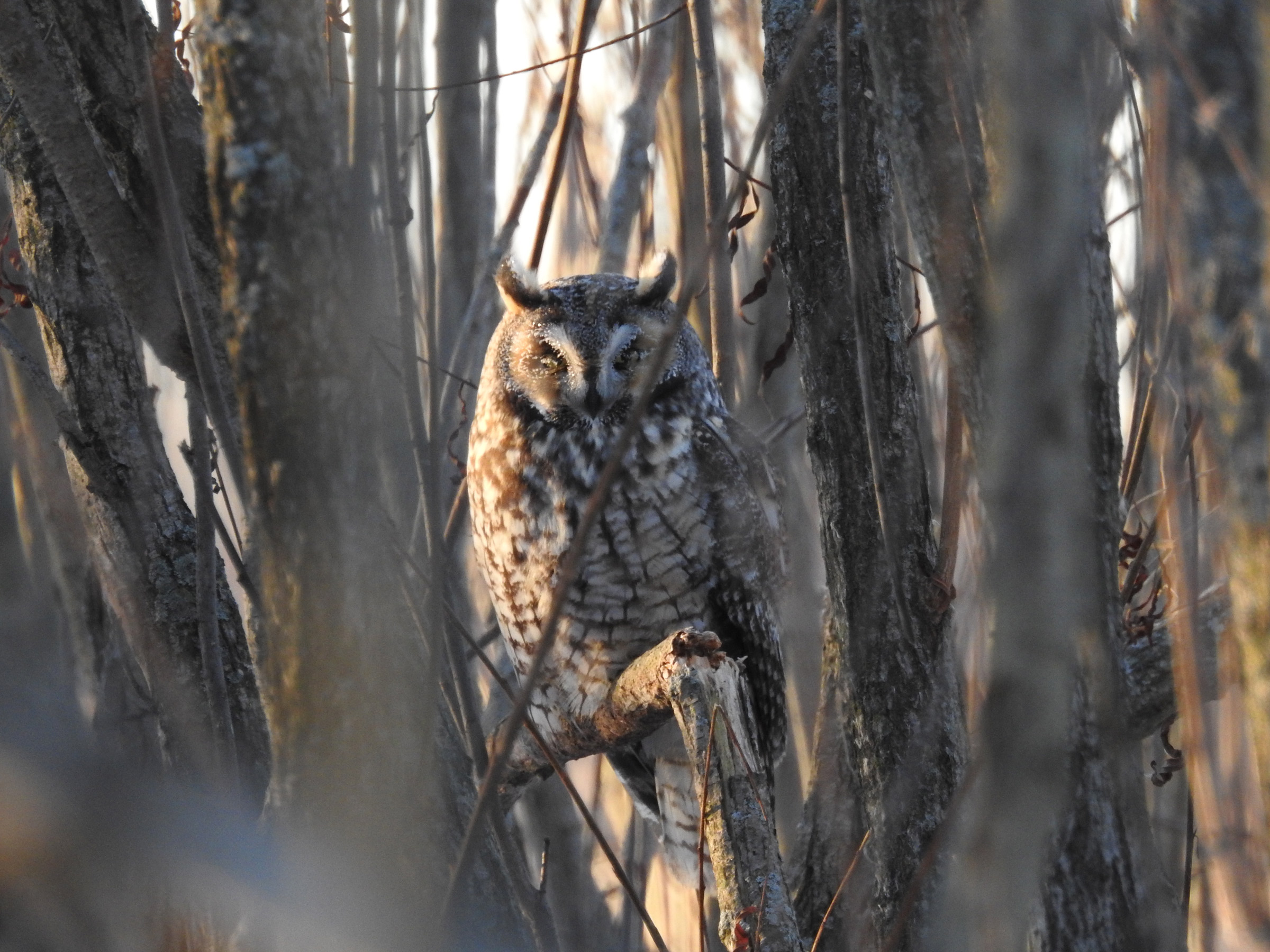 Long-eared Owl - American Bird Conservancy The Long-eared Owl is unusually social for an owl. During winter, it can be found roosting in groups, from several to upwards of 20 individuals, although roosts as large as 100 have been recorded. These congregations are located within thick cover, where the birds are very difficult to detect.
