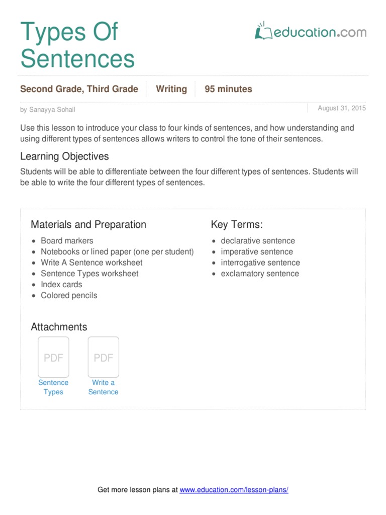 Types of sentences worksheet pdf. Types of Sentences Worksheets for Grade 1 | K5 Learning Types of Sentences Declarative, imperative, interrogative and exclamatory sentences Sentences can be statements, commands, questions or exclamations. In these writing worksheets, students identify the various types of sentences. Worksheet #1 Worksheet #2 Worksheet #3 Worksheet #4 Similar: Sentences or fragments? Changing sentence types PDF Four Types of Sentences - Ereading Worksheets Name: _____ Four Types of Sentences Directions: Identify each type of sentence and explain your answer. Types of Sentences: declarative, imperative, exclamatory, and interrogative. 1. The students wanted to go on a field trip. Type: _____ Why? Sentence Types Worksheets - Easy Teacher Worksheets Read each sentence. Is it a declarative, interrogative, imperative, or exclamatory sentence? Write the sentence type on the line. Understanding Those Types Choose one of the subjects provided. Write four different sentences about the subject. Be sure to punctuate correctly. Punctuation It Too! Read each sentence below. The Four Types of Sentences | Worksheet | Education.com The Four Types of Sentences Let's take a look at sentences! With this writing resource, help your ELs familiarize themselves with the four sentence types: declarative, imperative, exclamatory, and interrogative. As an added challenge they will have to write sentences of their own! Download Free Worksheet See in a Lesson Plan View answer key